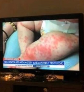 Then, we can head on down to CBS…. Walter Cronkite’s old stomping grounds. CBS has been caught showing film footage from hospitals in Italy during the pandemic claiming in their broadcast the footage was from NYC. Again… a lie. Just today, they showed the following pictures of a child they claimed was suffering from an illness related to Covid. But the picture is clearly from a 2016 photo of a Ukranian child that did not have COVID.
