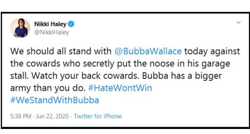 Good morning to everyone that tapped the breaks on the Bubba Wallace story yesterday. If you restrained yourself from judging the situation….. congratulations! If you didn’t… you aren’t alone. It seems Bubba owes NASCAR fans an apology for calling them simple-minded people that refuse to accept change and are basically confederate flag waving racists. Here is one person that just couldn’t WAIT for the facts and now we all know she was wrong.
