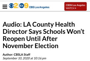 They think we are STUPID! They are choosing NOT to educate kids until we can get past the 2020 Election. There is NO OTHER REASON to randomnly select that date to determine if classrooms are virus free and safe. You have been lied to by Mayors, Governors, School Administrators, and Health Departments for the past 6 months.