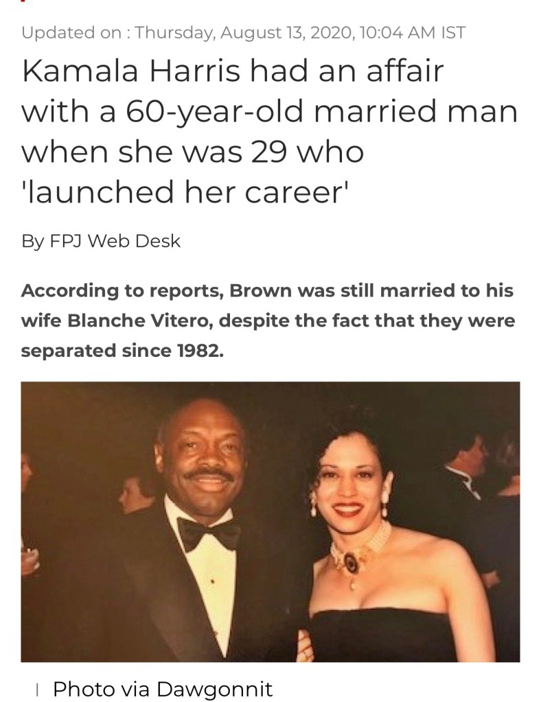 Let me give you a tid bit of WHO she is. First of all… she’s NOT African American (as many of you dumbos claim). She’s Jamaican / Indian… so at least get that part right. As for her ethics? Well, she was banging a married man, Willie Brown, so she could further her career so I’m thinking she’s a little “short” in the ethics department. You are telling your little girls, “the country has changed for the better because a woman is leading the way” but I’m not seeing you point out to them the adulterous immoral way that she got there.