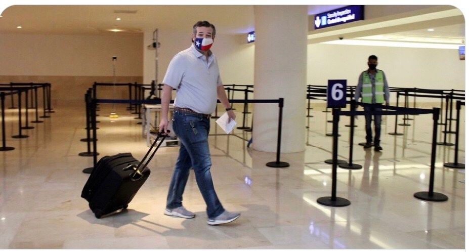 First, let’s talk about what ‘Ol Ted did. He was photographed at the airport boarding a flight from Texas to warm and sunny Cancun for a vacation. It was a last minute thing because the kids were out of school (for those of you living in CA & NY… you may be unaware but YES, some schools in this country are actually open for students). Well… that photo caused the media and many of you to lose your damn minds. “How dare he LEAVE Texas in the midst of this crisis?” “People have NO electricity, heat or water and he’s got the nerve to fly away to avoid the suffering”. “He should resign his Senate seat immediately for abandoning his constituents in their time of need” And… my all time favorite, “He’s a Senator and people are DYING and he’s doing NOTHING to save lives”.