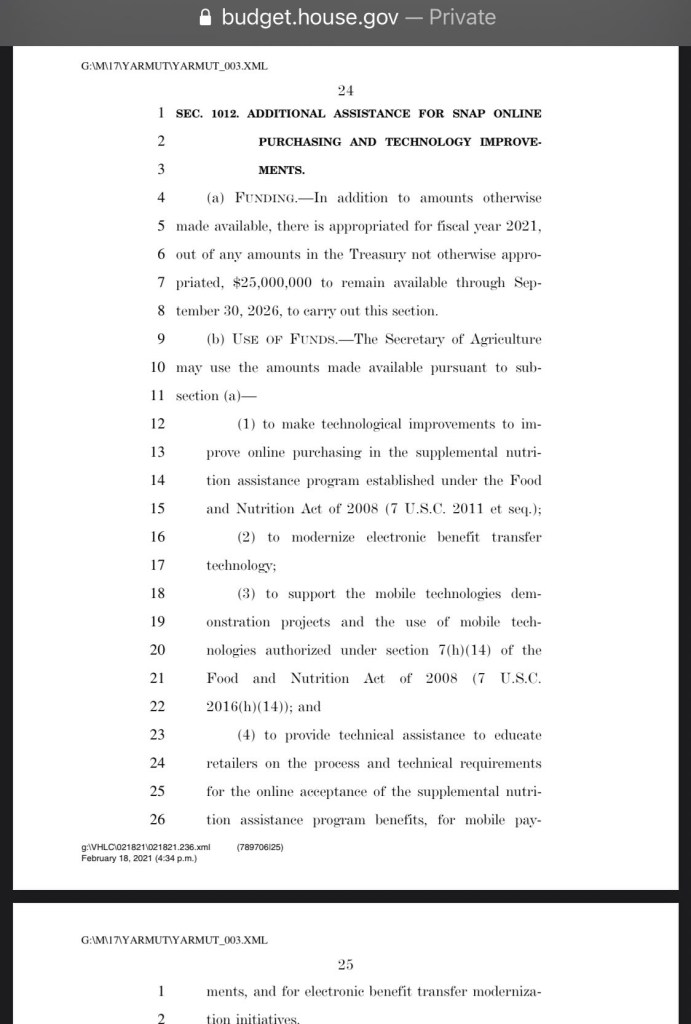 $25 MILLION for the Ag Secretary to spend on modernizing electronic services. They need to make their website look pretty for all the folks looking up how to get food stamps!