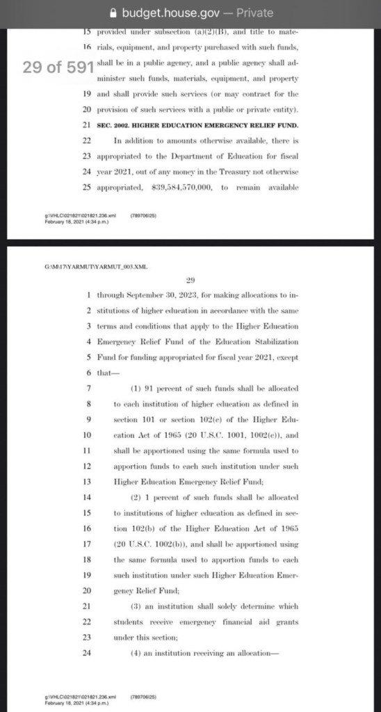 $40 BILLION for universities. Yes… it even goes to the ones with billion dollar endowments that could certainly fund their own “tough times”.