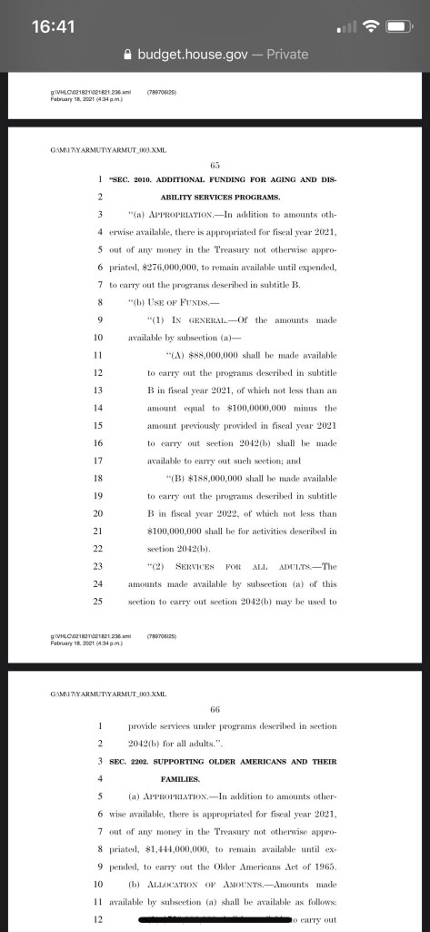 $276 MILLION for Aging and Disability Services plus $1.4 BILLION for supporting Older Americans and their Families. Leave it to the Government to find a way to complicate and make it MORE damn expensive to just mail a freaking check to the elderly!