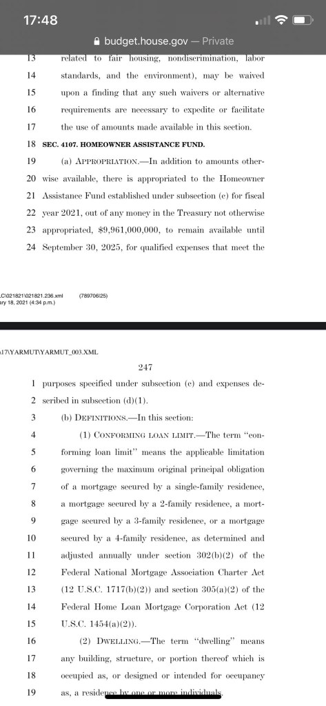 $10 BILLION For the Homeowner Assistance Fund and $40 MILLION for Administrative Costs to hand out the money from the damn fund! Obviously those administrative folks gonna get a nice car, expense account and food catered to their desk while they hand out the money!