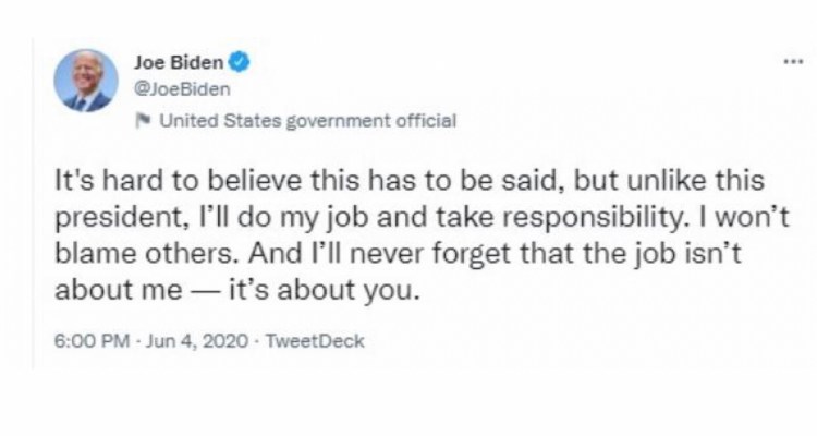 Prior to placing his hand on a Bible on the front steps of the Capitol, Ol’ Joe said that as a leader, he would take responsibility and not blame others for his failures.