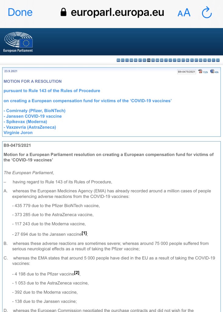 On October 14, 2021 the European Union recommended setting up a monetary fund to cover adverse reactions to the COVID vaccine. As of today, they have identified over 1 million claimants eligible for monetary compensation.