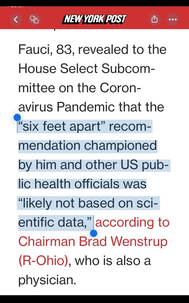 And I’ll ask again…. how many times was Fauci interviewed and asked for his science opinion and recommendations as we plowed through 3 years of COVID. How many times has he been interviewed since we’ve known that 1. 15 days was a fraud and 2. 6 ft social distancing was unnecessary.
